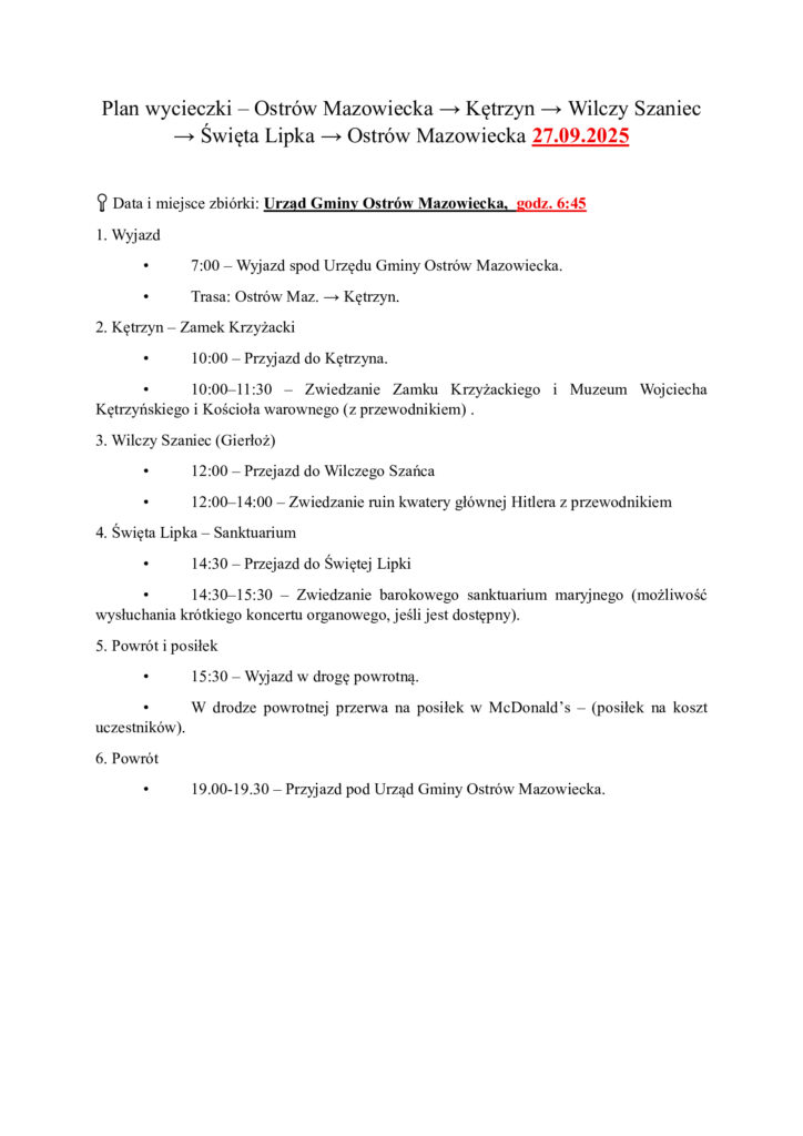 Wycieczka do Mikołajek i Kadzidłowa – 25 sierpnia 2025 r.
